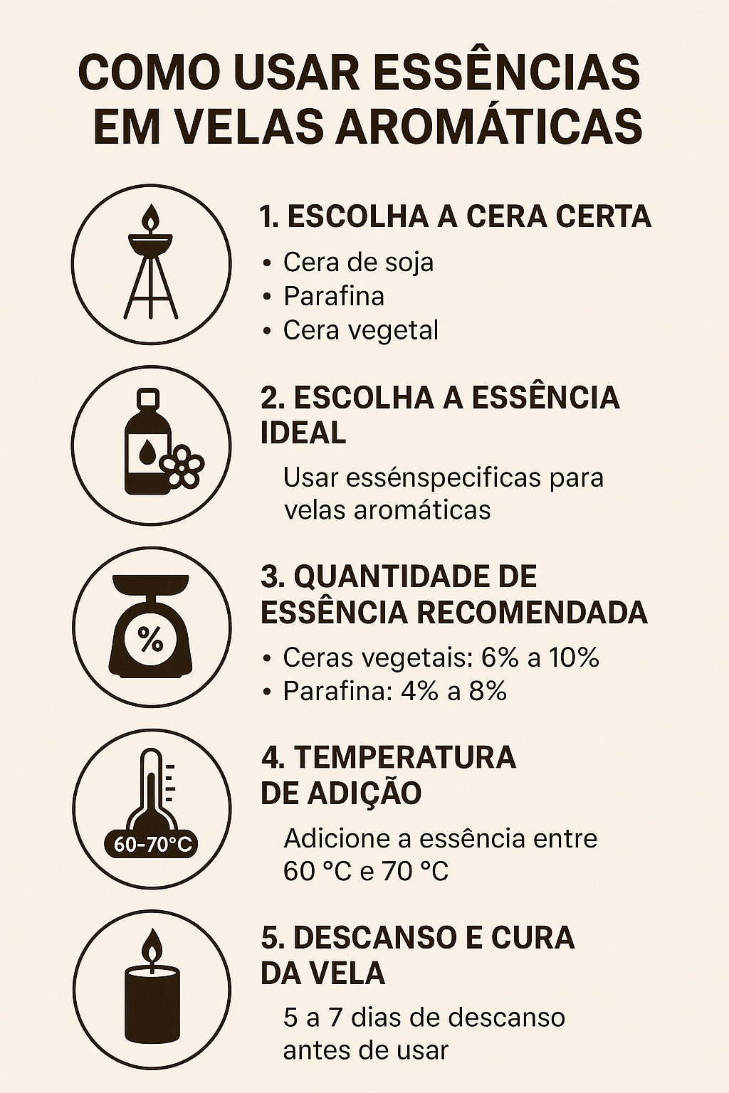➡️ Mais essência nem sempre significa mais perfume — o excesso pode prejudicar a queima da vela.